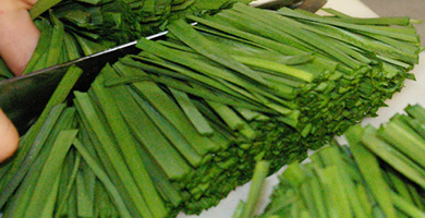 今や、中国食品のの農薬問題で高級野菜になりつつあるニラ。桝元では、辛麺も餃子もニラが命。 いくら値段が上がったからといってケチる訳にはいきません。 新鮮な宮崎、熊本産のニラをたっぷり使います。ニラもニンニク同様ヘルシーな食材、こんなにたっぷりのニラは家庭での食卓ではそう食べれないかもしれません。 |