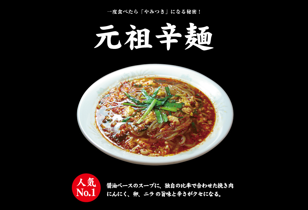| 桝元の辛麺スープの特徴 | これらのヘルシーな食材と特別に挽いた合い挽きのミンチ肉、そして秘伝のオリジナルスープが渾然一体となって桝元の辛麺スープが完成します。 この味、このヘルシーさは他にはない桝元オリジナルの絶品です。 |